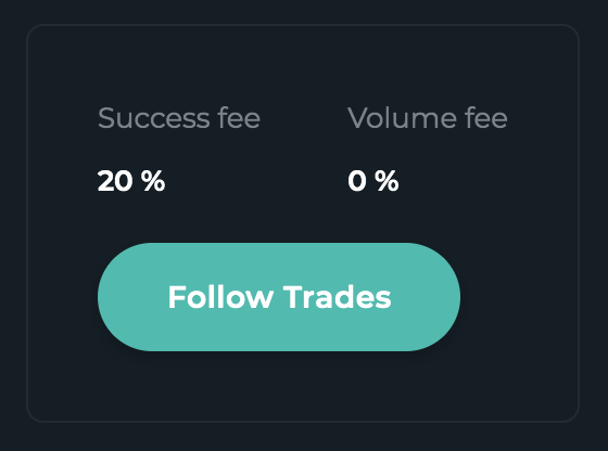 On the Follow account page, you can see all the information about it: the signal provider, broker he uses for trading, currency, fees, and many more. You can see the description of each fee if you point the arrow to it.